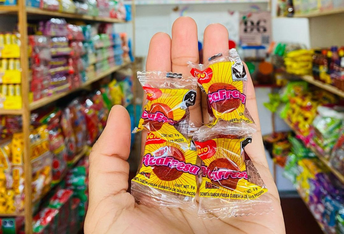 Gomita sabor fresa cubierta de dulce picosito